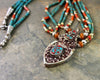 Turquoise and Coral Tibetan Karma Dolma Necklace