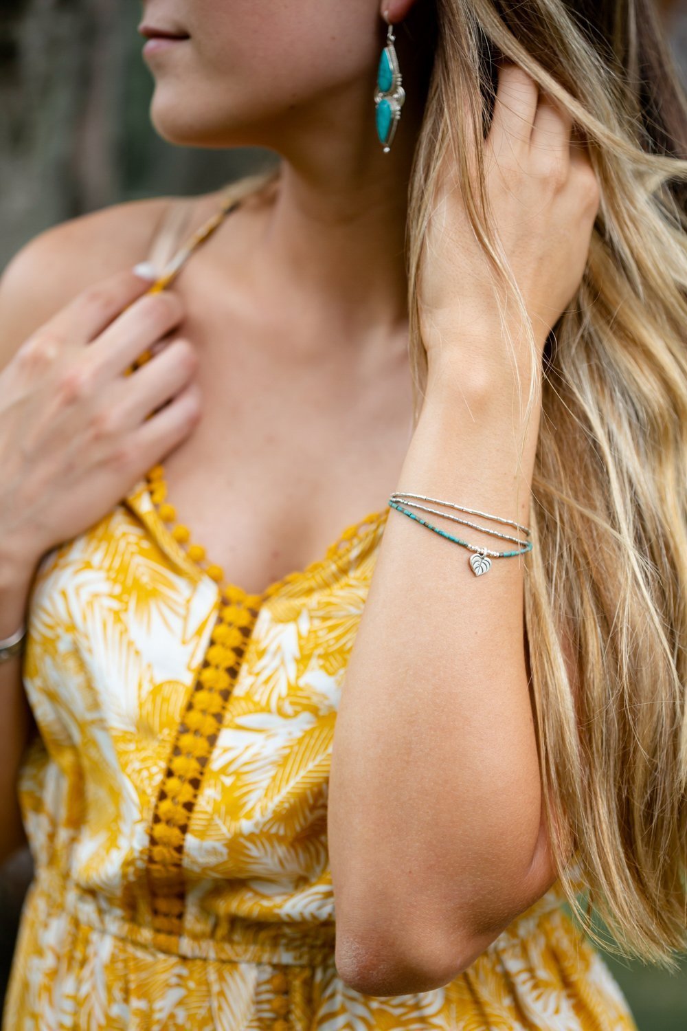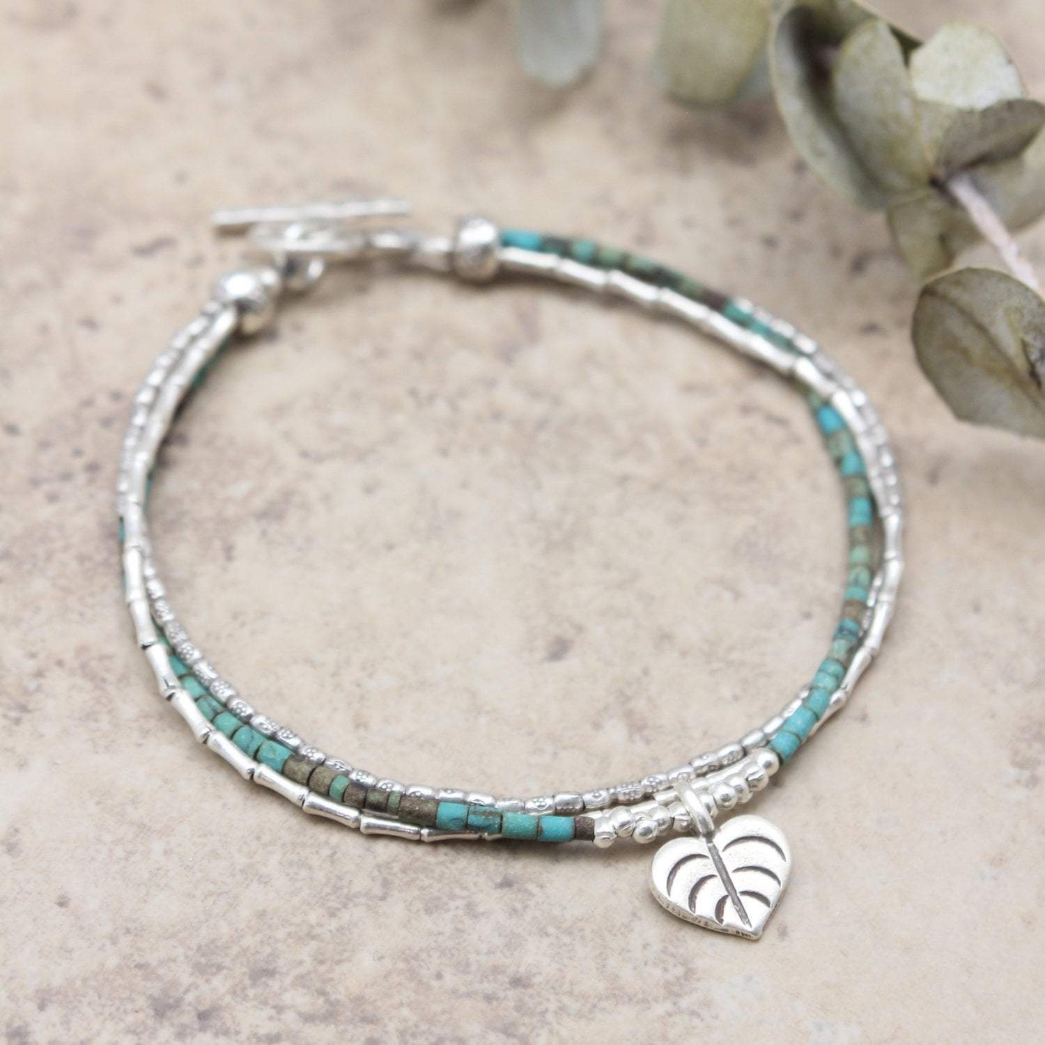 Turquoise and Silver Leaf Charm Bracelet