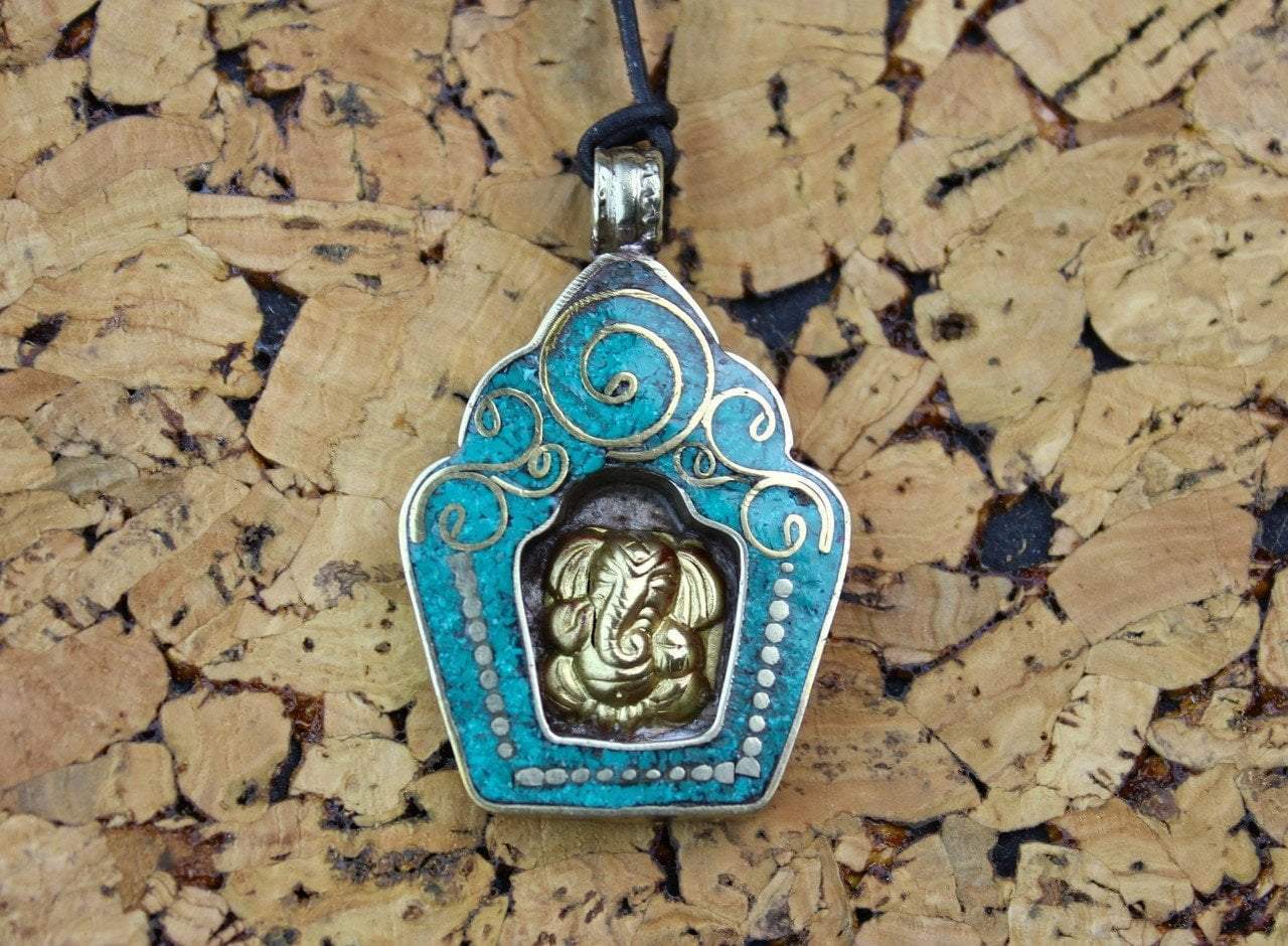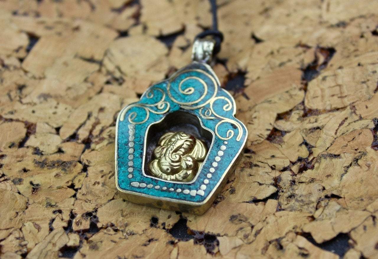 Ganesh Altar Pendant. Back and sides are silver, pendant and inlay are brass. Handmade in Nepal.
