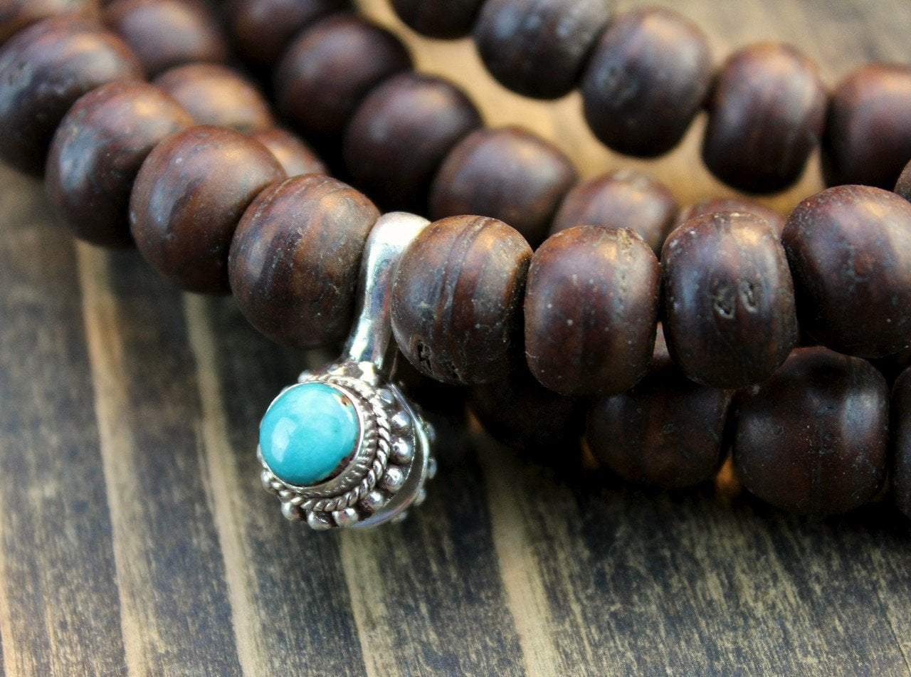 Beautiful sterling silver jewel accent with turquoise stone to decorate your mala. Sold as a pair.
