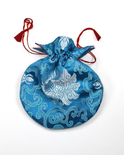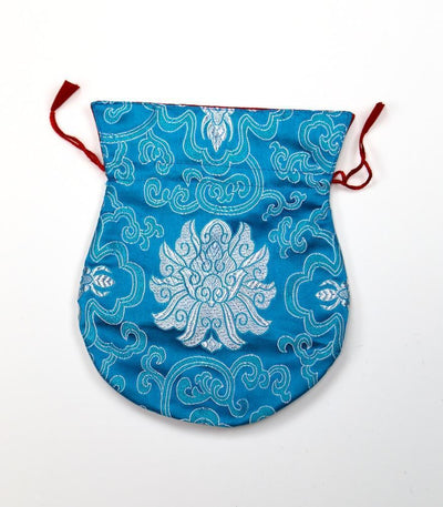 Great for traveling with your mala or for use as a unique, elegant clutch. Constructed of medium-weight, embroidered silk with a durable red cotton liner. Includes red drawstring closure. Hand made Nepal.