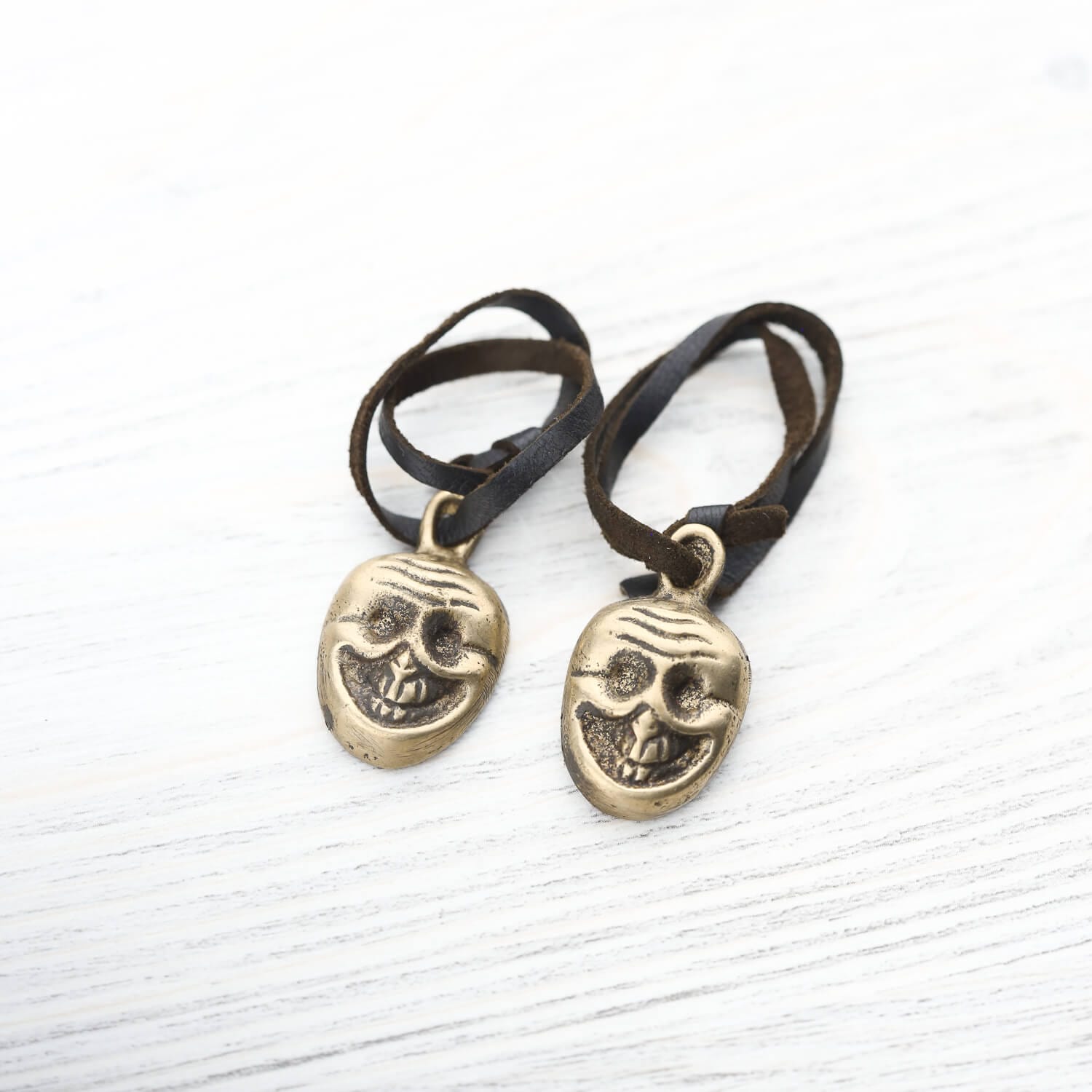 • Sold as a set of 2.  Handmade in Nepal of antiqued brass, these vintage mala counters feature a Tibetan/Newar impermanence skull design.