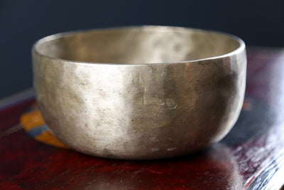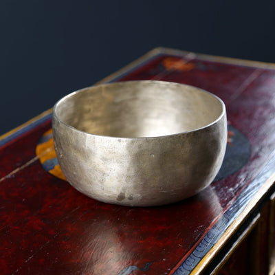 Each time we're able to get a small collection of these bowls is exciting as they are exceptional. Antique Tibetan singing bowls like this one are highly sought after for their remarkable quality sound, rich tones, and unique physical characteristics. Every handmade mark tells a story of the bowls history!