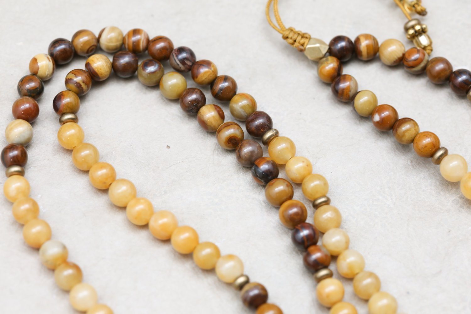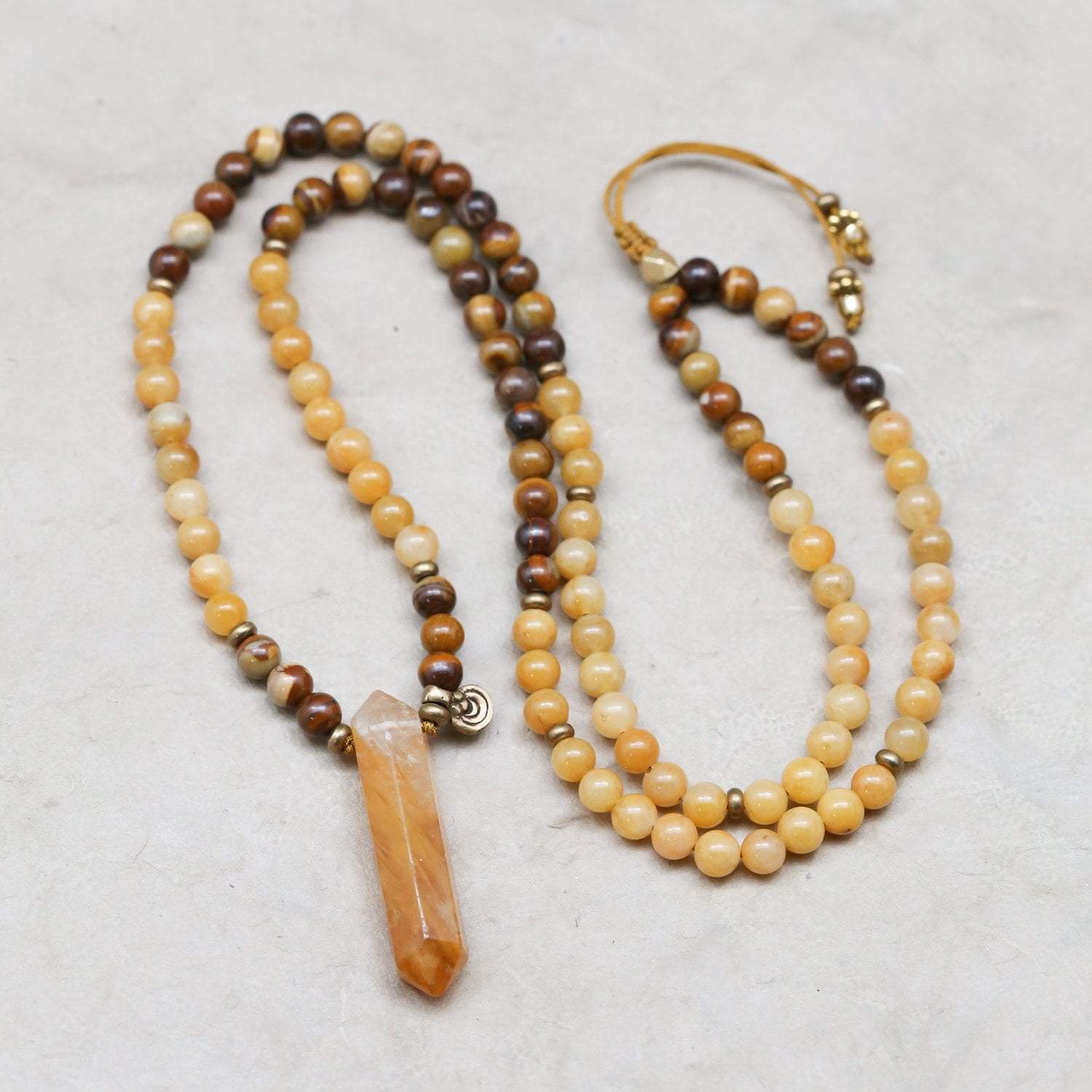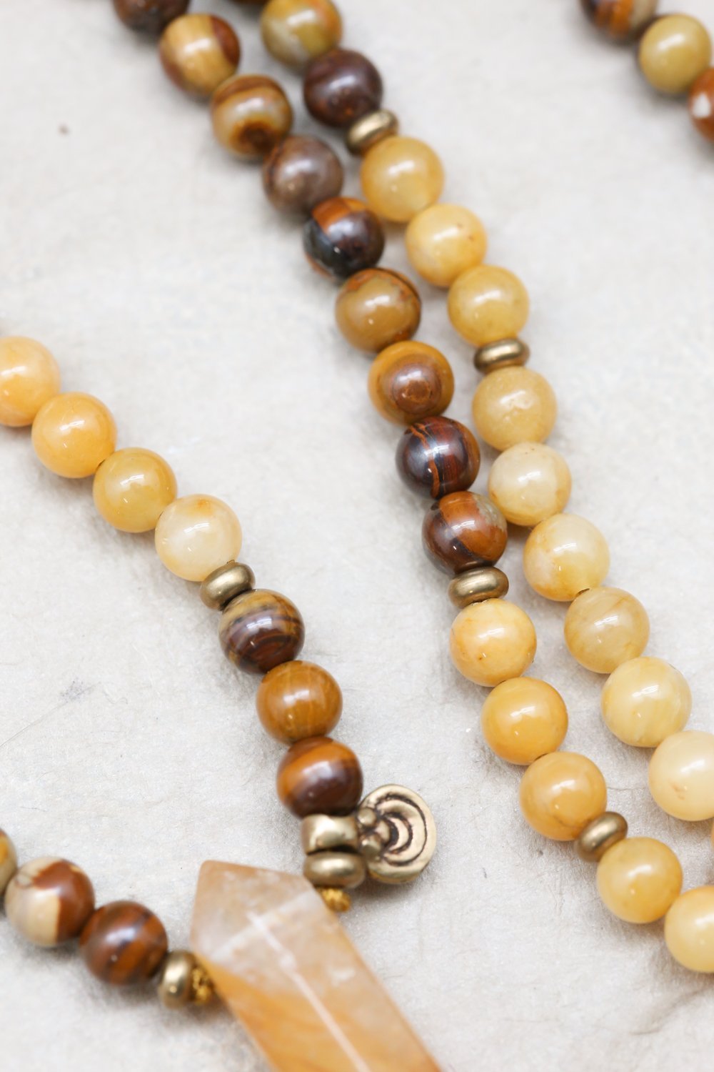 Mala measures approximately 26 inches around. Beads are 6mm. Gemstone pendants range from about 1 1/2 - 2 inches in length. *As each pendant is handmade, style or shape may vary slightly - please let us choose.*