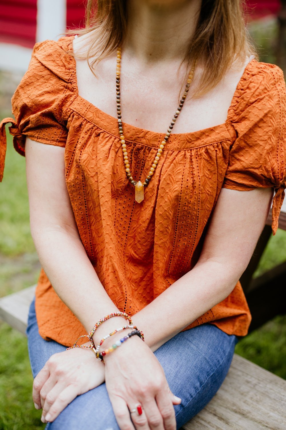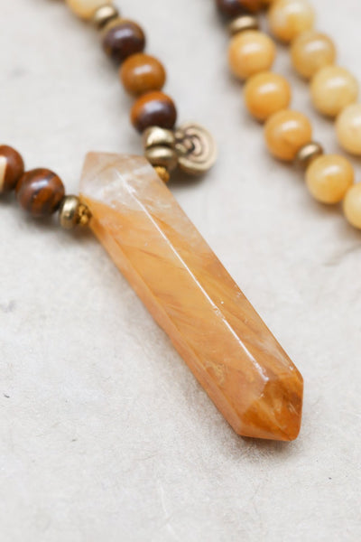 Powered by the sun, citrine is a warm and bright stone that radiates positivity and joy. It is known to activate and energize the Solar Plexus Chakra, the place where physical energy is distributed. Yellow Opal is said to have an uplifting and revitalizing effect. It helps to reinforce positive thought patterns and encourages creativity. Tiger eye is a protective stone believed to bring wisdom, clarity of thought, and protection to the wearer.