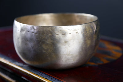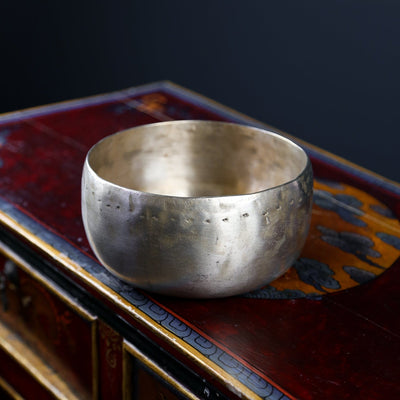 Each time we're able to get a small collection of these bowls is exciting as they are exceptional. Antique Tibetan singing bowls like this one are highly sought after for their remarkable quality sound, rich tones, and unique physical characteristics. Every handmade mark tells a story of the bowls history!
