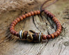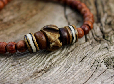 Rosewood, inlaid bone and wood beads make up this men's wrist mala. Looks great paired with other wrist malas due to the smaller rosewood beads. Made on adjustable, thick wax cord
