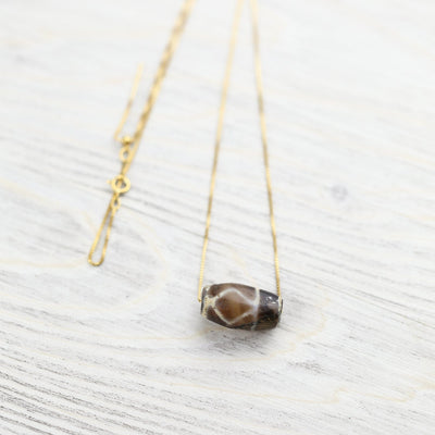 Durante los últimos 20 años, el fundador de DharmaShop, Sander Cohen, ha estado coleccionando cuentas Dzi de todas las edades y diseños tanto de Nepal como de Taiwán. Este antiguo Diamond Eyes Dzi en particular proviene de la colección personal de Sander. Lo adquirió de un coleccionista de artefactos tibetanos con el que hemos trabajado y comercializado durante dos décadas y que ha estado viajando por Asia y el Himalaya durante más de 30 años.