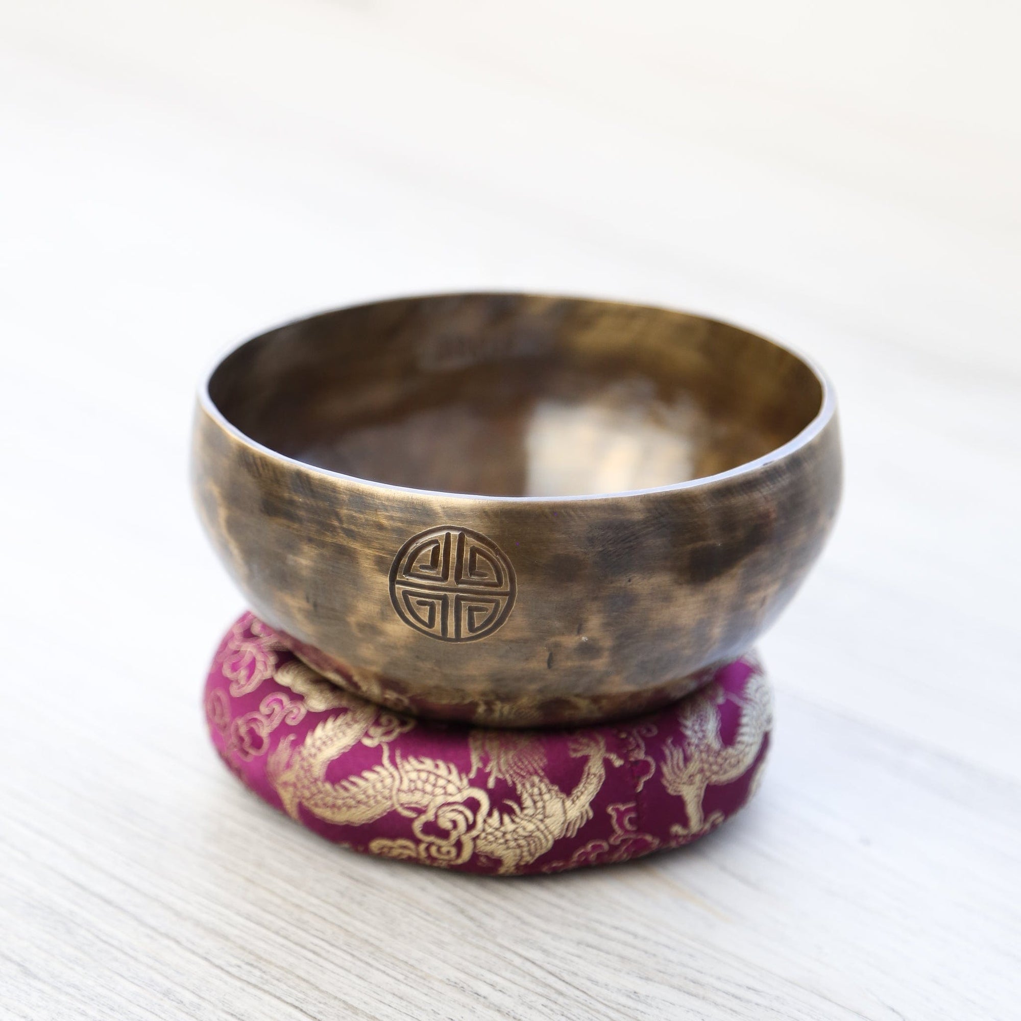 • Each bowl was hand selected in Nepal for their amazing quality of sound by the DharmaShop team. They are hand hammered, hand carved, and hand tuned by the best singing bowl artists in Kathmandu.