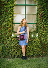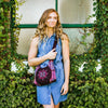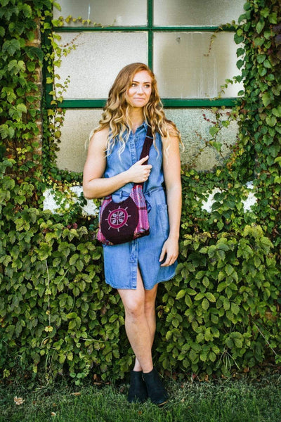 ¡Lleva nuestro bolso hecho a mano 100% algodón contigo en tu próximo viaje! Presenta un diseño de la Rueda del Dharma bordado en mosaico con bordes de tela de estilo butanés. Los ocho radios de la Rueda del Dharma representan el óctuple camino hacia el nirvana. Uno de los símbolos más antiguos del budismo, se le conoce como símbolo de renacimiento y despertar. Este bolso incluye un pequeño bolsillo abierto en el interior y una correa ajustable para el hombro. C se cierra con cremallera y botón.