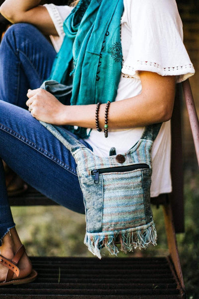 ¡Nos encanta este divertido bolso cruzado hecho a mano de Katmandú y su aspecto de mezclilla desgastada! Este elegante bolso cruzado pequeño es una excelente manera de agregar un poco de moda nepalí a tu guardarropa. Confeccionado y tejido a mano con 100% algodón lavado a la piedra, dándole la apariencia de mezclilla desgastada. El frente del bolso presenta un hermoso tejido de algodón multicolor con un refrigerador en la parte inferior y un pequeño bolsillo con cremallera. El interior está forrado de algodón negro e incluye un pequeño bolsillo abierto. Se cierra con cremallera y botón.