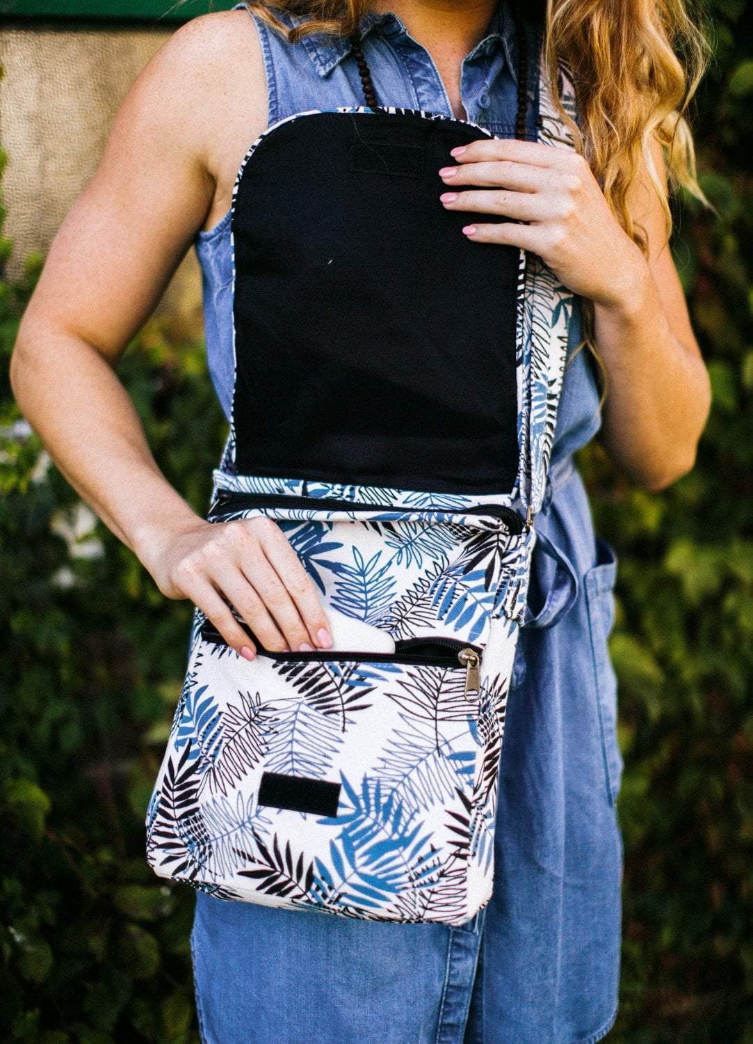 ¡Nuestro bolso de hombro hecho a mano es el accesorio de viaje perfecto! Ya sea que esté explorando una nueva ciudad, un país o pasando el rato en su ciudad natal, este bolso le permite llevar sus elementos esenciales y mantenerlos seguros en su interior. Confeccionado con 100% algodón en un color tostado claro con diseños dinámicos de hojas de helecho. Tiene algunas características interesantes como una correa ajustable, un pequeño bolsillo con cremallera en el interior y exterior del bolso, un cierre con cremallera y una solapa que se pliega para proteger el contenido interior. La solapa plegable también incluye un bolsillo exterior con cremallera para las pertenencias a las que desea acceder fácilmente.