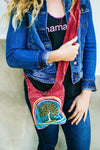 El Árbol de la Vida es un símbolo popular de crecimiento y conexión con todas las cosas, lo que hace que este mini bolso cruzado sea ideal para mantenerse con los pies en la tierra. Este bolso de algodón hecho a mano en Nepal presenta un divertido aspecto desgastado con un diseño del Árbol de la Vida bordado en el frente. El interior está forrado de algodón negro y tiene un pequeño bolsillo abierto en el que cabe perfectamente un móvil. Se cierra con cremallera YKK y cierre de botón único.