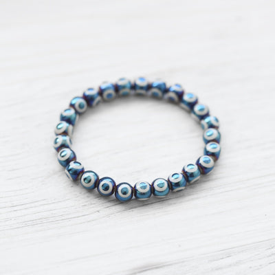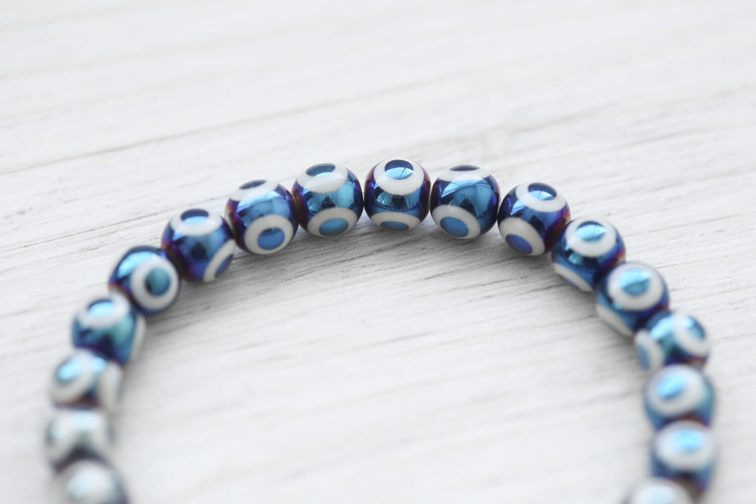 The Evil Eye is an ancient symbol believed to offer protection from various types of negativity or maliciousness including unintentional, intentional, or unseen. The symbol is often seen in blue, a traditional color for good karma, positive energy, and protection. This bracelet offers the wearer protection, positive energy, and healing while keeping a watchful eye over you as you move forward through your journey.