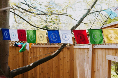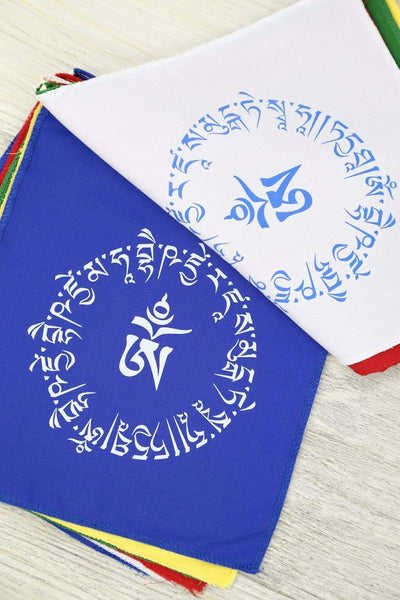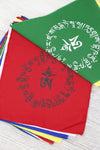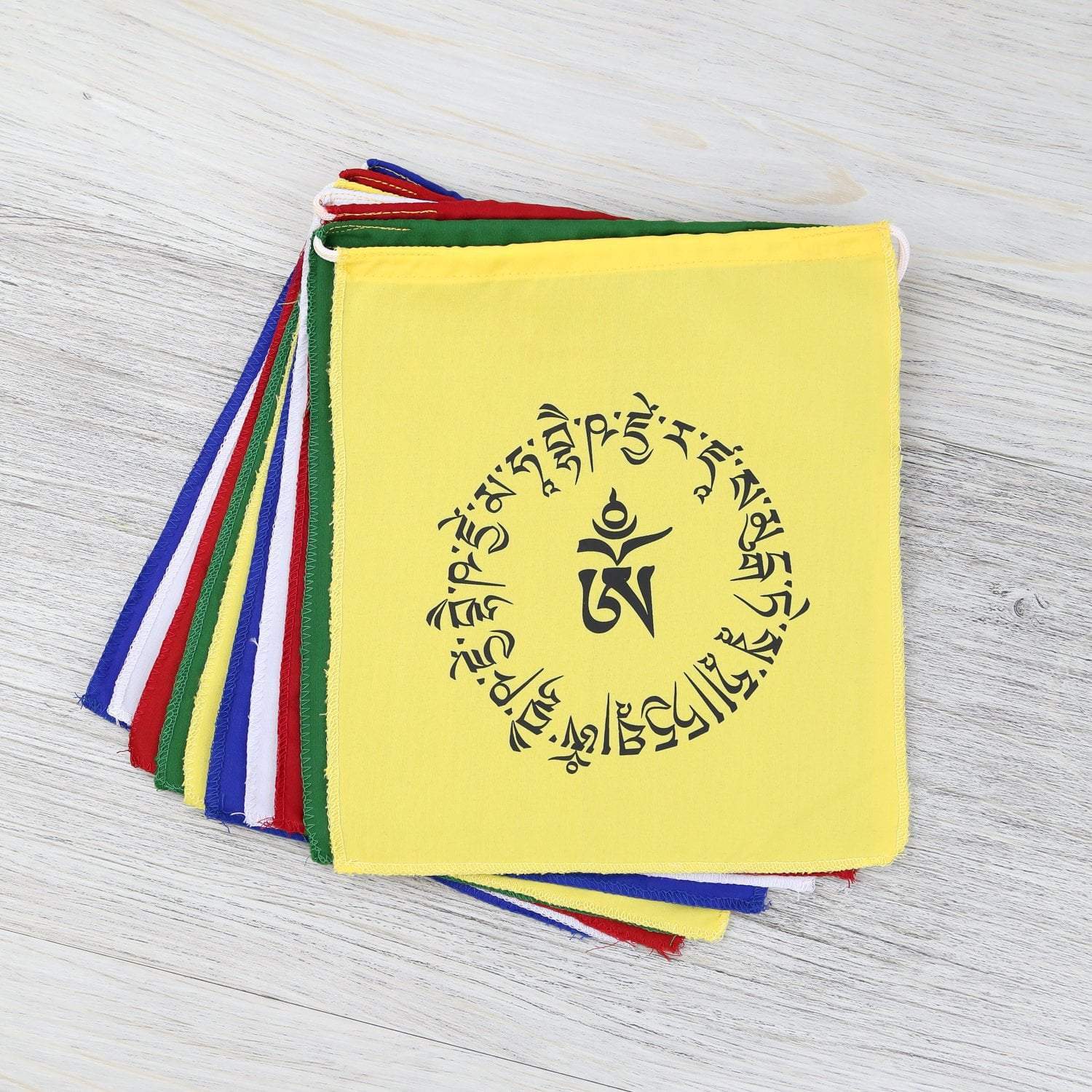 El juego incluye 10 banderas que miden aproximadamente 8 por 8 pulgadas. La hebra entera mide unos 10 pies de largo. Confeccionado en algodón con dobladillo en Nepal.