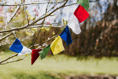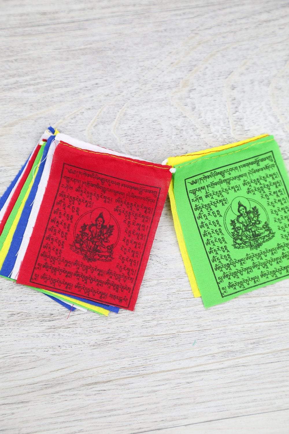 El juego incluye 10 banderas que miden aproximadamente 3 por 3 1/4 pulgadas. Toda la hebra mide aproximadamente 3 pies de largo. Fabricado en poliéster en Nepal.