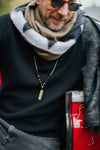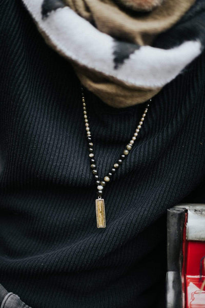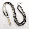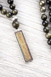 Mala mide aproximadamente 30 pulgadas de diámetro. Las cuentas de obsidiana son de 8 mm, las cuentas de pirita son de 8 mm y 6 mm. El colgante mide 1,75 pulgadas de alto con fardo.
