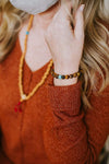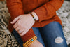El mala de muñeca ajustable mide aproximadamente 6,75 pulgadas alrededor cuando está completamente apretado y se abre a aproximadamente 9 pulgadas. Las cuentas miden 8-9 mm. Fabricado en Nepal.