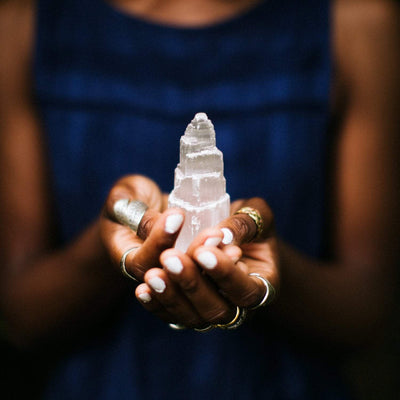 La selenita es un cristal muy pacífico y calmante que ayuda a eliminar la energía negativa. Se asocia con una conciencia superior y ayuda en la meditación, ayudando a despejar la mente para lograr una paz profunda. Este poderoso cristal ayuda a equilibrar el Chakra Corona. La selenita es especial; es uno de los únicos cristales con el poder de recargarse y limpiarse constantemente.