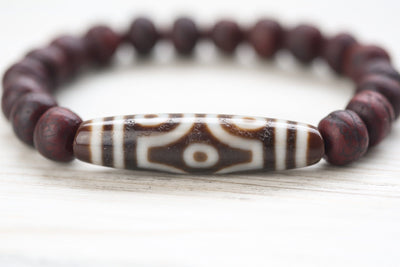 Tenga en cuenta que cada cuenta Bodhi antigua y cada cuenta Dzi de ágata verdadera es única y, por lo tanto, su pulsera mala será única. Las fotos aquí sirven como ejemplo de cómo quedará tu pulsera.