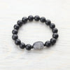 Mide aproximadamente 7 pulgadas alrededor con cordón elástico. Las cuentas miden 10-11 mm. El cordón focal es de aproximadamente 0,75 pulgadas.