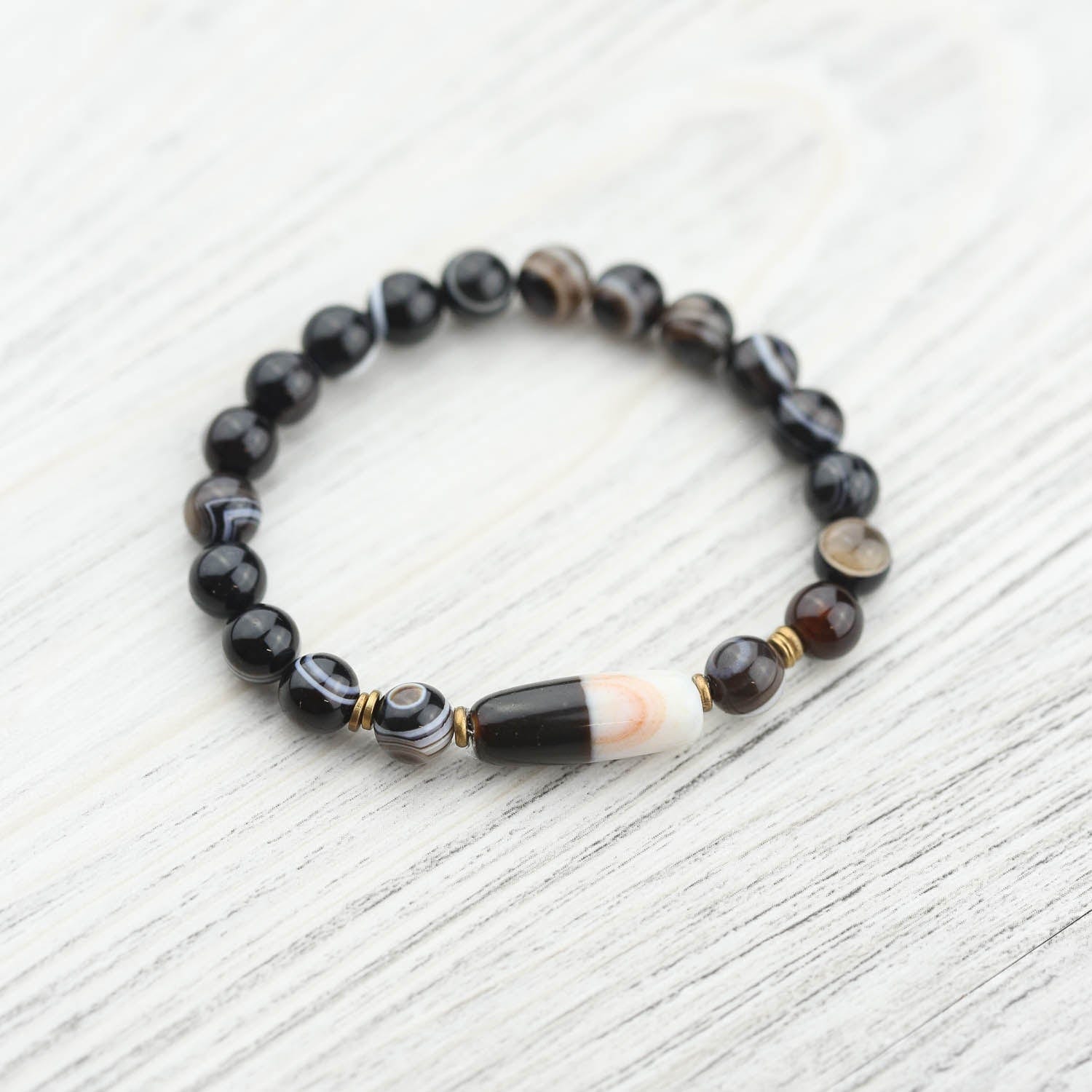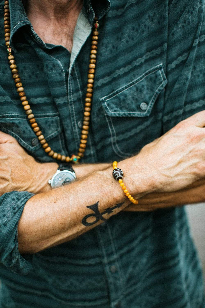 Las pulseras para hombre de DharmaShop lucen geniales solas, combinadas junto a un reloj o incluidas en una elegante pila de tus pulseras y pulseras favoritas. Ensartado a mano en Nepal o aquí en DharmaShop con materiales obtenidos éticamente en todo el mundo.