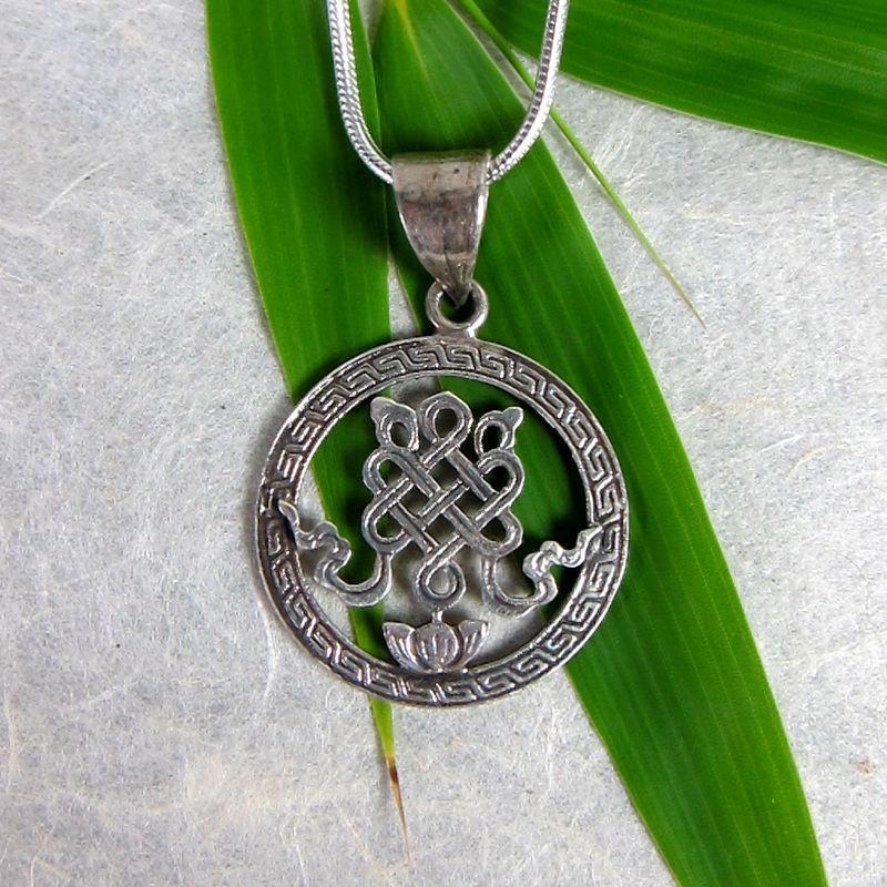 El Nudo Infinito o Eterno tiene un significado especial en muchas culturas y puede servir como un recordatorio de la interconexión y la unidad. Es uno de los 8 símbolos auspiciosos que representa el entrelazamiento de la sabiduría y la compasión. Debido a que no tiene principio ni fin, el nudo también simboliza la sabiduría interminable de Buda.