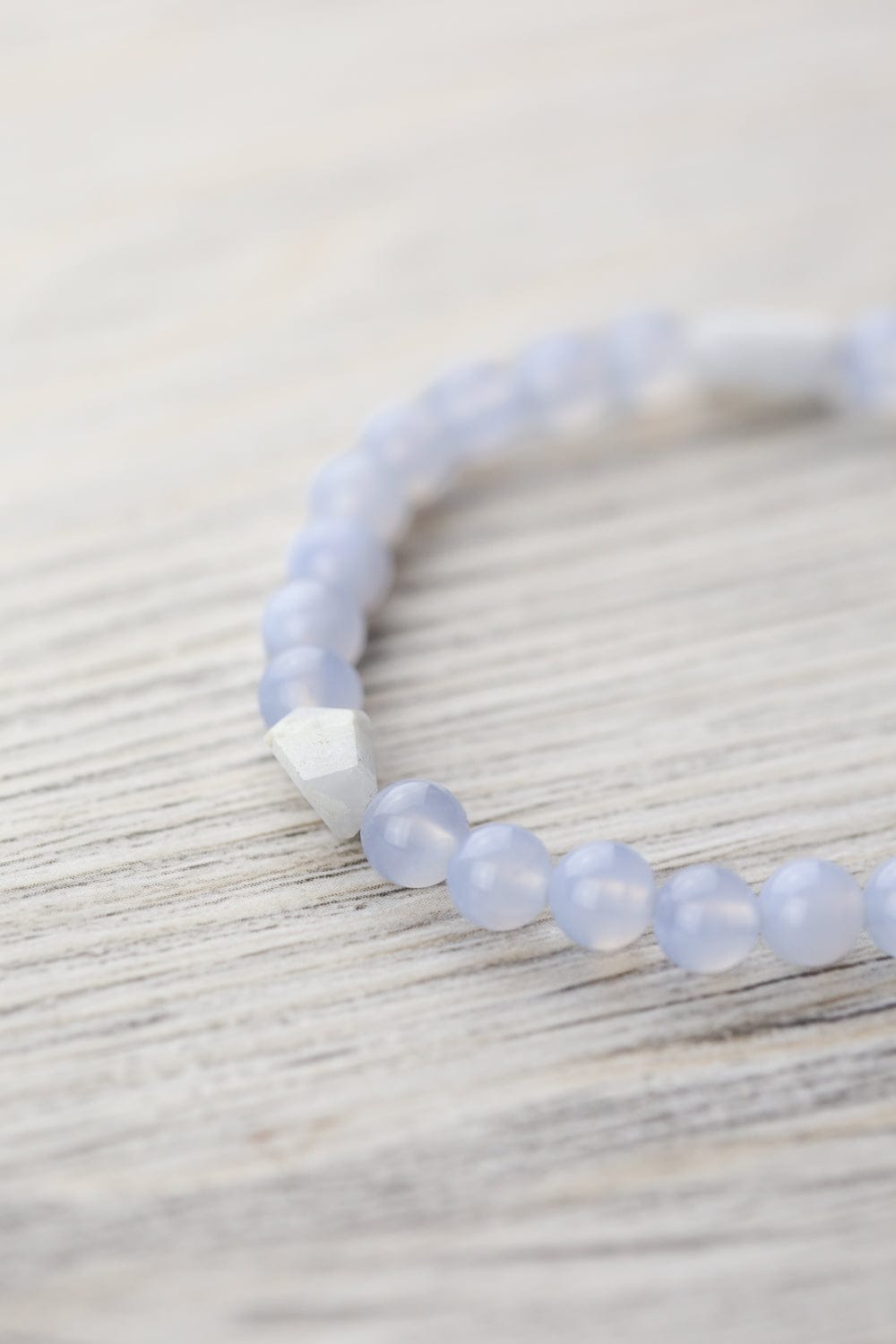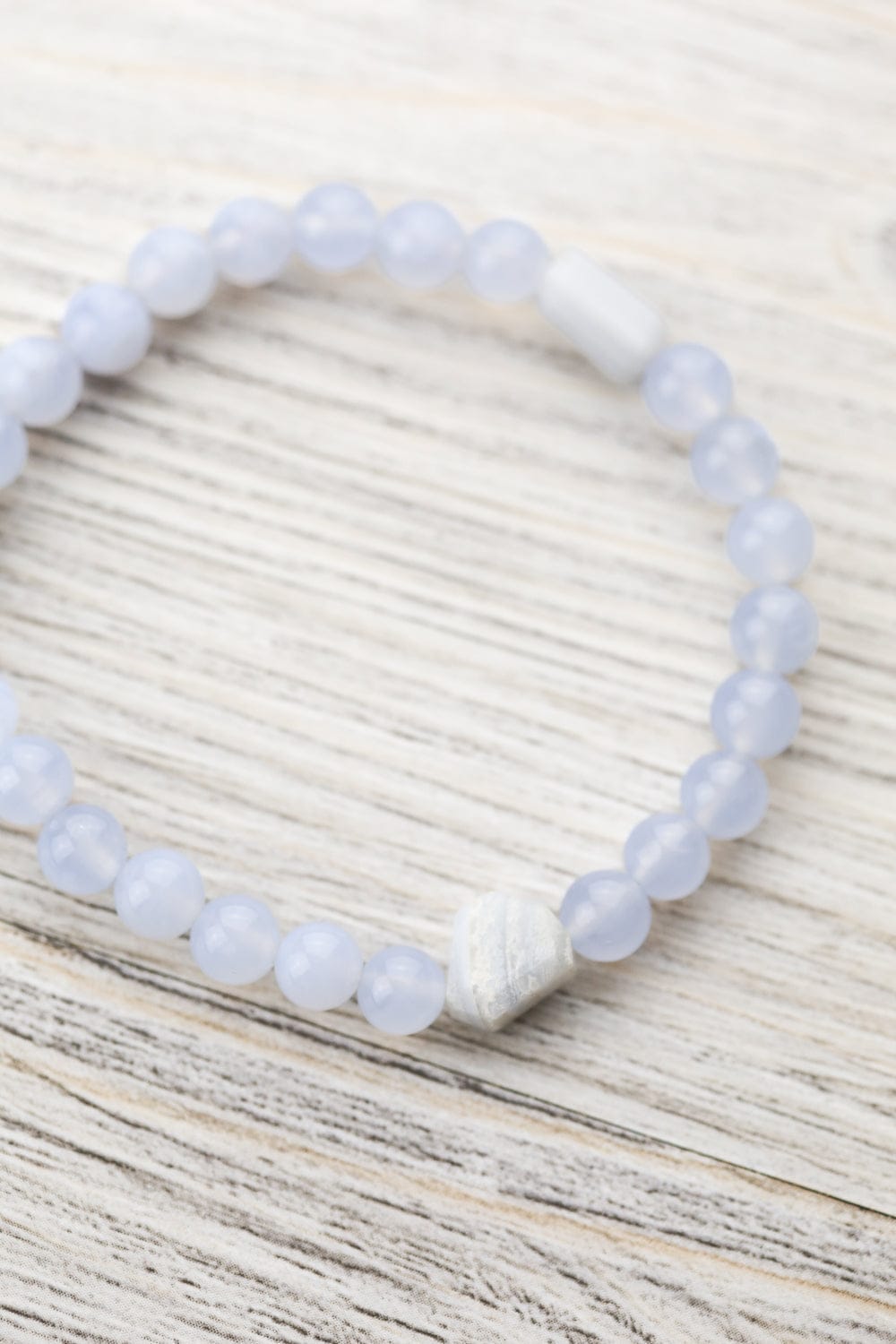 Some pieces are meant to feel effortless, and this is one of them. The soft sky-blue tones of Blue Lace Agate have a naturally soothing presence, often associated with clarity, ease, and calm expression. Many people keep stones like this nearby when they want to slow down, breathe deeper, or bring a little more patience into the day. This is one you forget you're wearing until someone compliments you, or you start fidgeting with a bead to feel grounded.