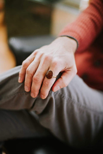 Anillo de tamaño. El frente del anillo mide aproximadamente 3/4 de pulgada de alto y 3/8 de pulgada de espesor. *Debido a la naturaleza artesanal del anillo y su piedra, el tamaño y la forma pueden variar ligeramente.*