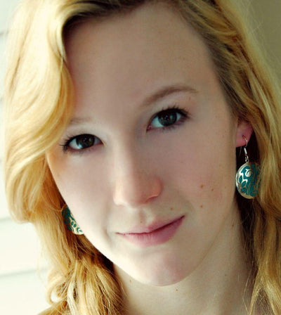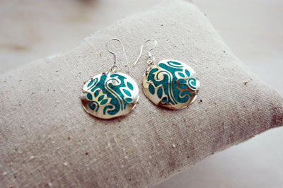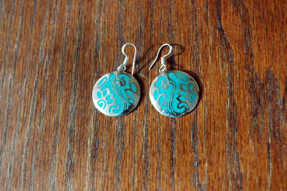 ¡Ya están aquí nuestros nuevos pendientes de plata! Turquesa con incrustaciones con diseño de vid plateada con ganchos franceses de primera ley.