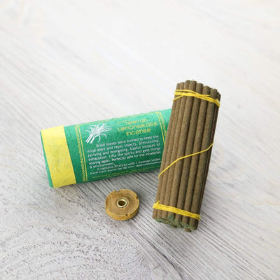 Incluye unos 30 palos que miden 4 pulgadas. Viene con un pequeño quemador de madera y está envuelto dentro de un tubo de papel lokta ecológico.