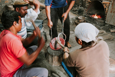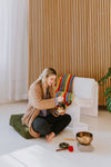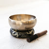 Todos y cada uno de los aspectos de este conjunto están elaborados con cuidado por manos de artesanos del valle de Katmandú. El cuenco está martillado, pulido y fijado a mano con nuestra promesa de DharmaShop de que su cuenco será perfecto. Se combina con un tradicional golpeador de madera y un cojín de anillo de brocado cosido a mano y relleno con materiales reciclados.