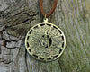 Un colgante Om tibetano extra grande con símbolos auspiciosos hecho de latón.