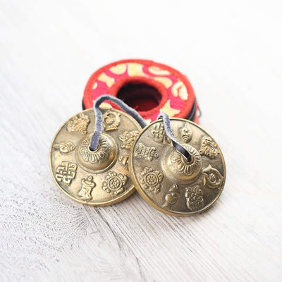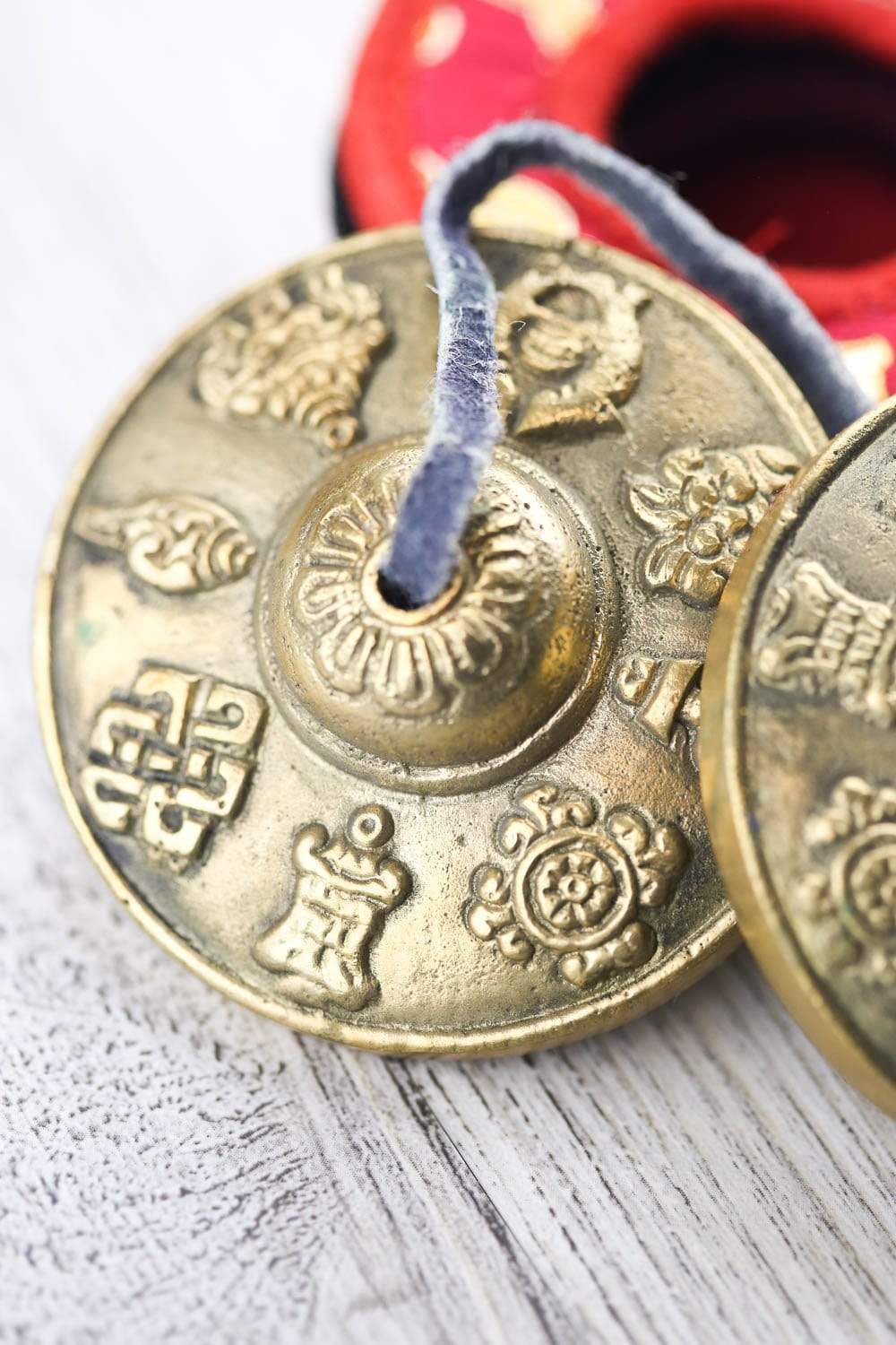 Los tingshas miden aproximadamente 2,25 pulgadas de diámetro.