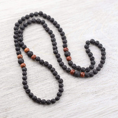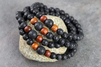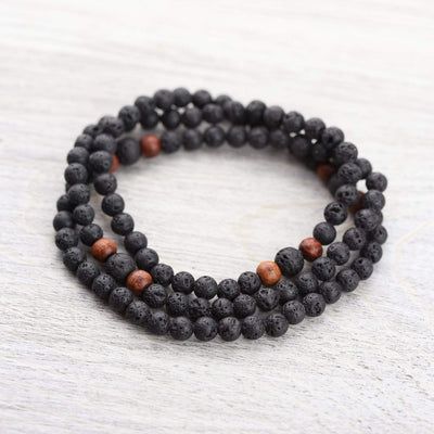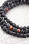 • ¡Hemos escuchado sus solicitudes y convertimos nuestra pulsera Mala de cuentas de madera tailandesa y roca de lava de doble vuelta en una mala tradicional tibetana de 108 cuentas!