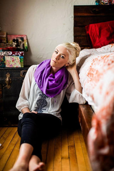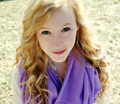 Nuestro nuevo chal de pashmina 100 % color lavanda tiene una textura suave y lujosa y es un poco más pesado que nuestra 'pashmina de agua', que es una mezcla de seda y pashmina. Nuestra colección 100% pashmina es la colección de pashmina de mayor calidad del mercado e incluye los muy populares flecos de alta calidad.