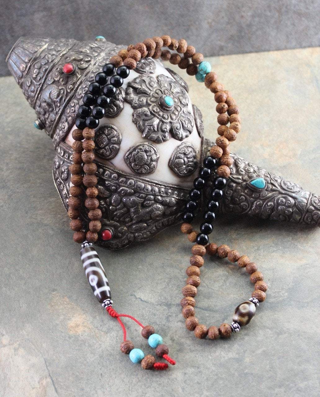 Mide aproximadamente 28 pulgadas de diámetro. El Dzi de 2 ojos mide aproximadamente 1 1/2 pulgada de largo y 1/2 pulgada de ancho, el Dzi de 3 ojos mide 5/8 de pulgada de largo y 1/2 pulgada de ancho. Las cuentas son de 8 mm. Hecho a mano en Katmandú, Nepal.