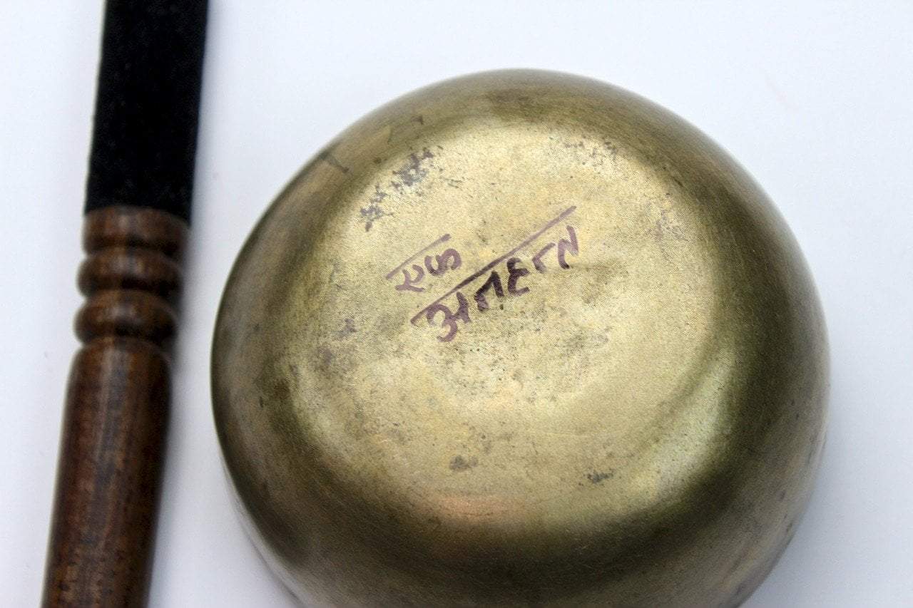 El coleccionista original de este juego de cuencos marcó los chakras en el fondo de los cuencos en sánscrito. Sin embargo, la escritura se puede quitar fácilmente con un paño húmedo.