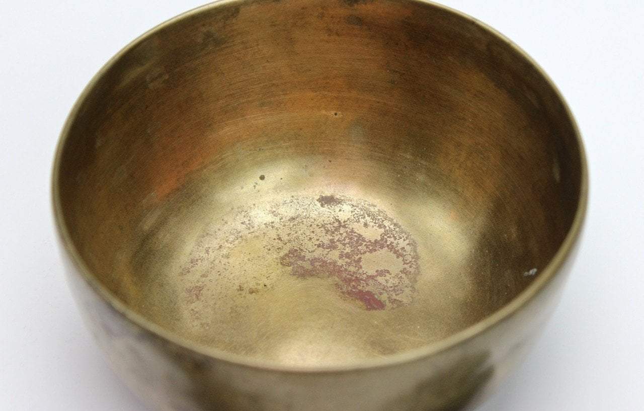 4 1/4 pulgadas de ancho por 2 pulgadas de profundidad, martillado a mano. Canta con un tono de Fa cuando lo golpean.