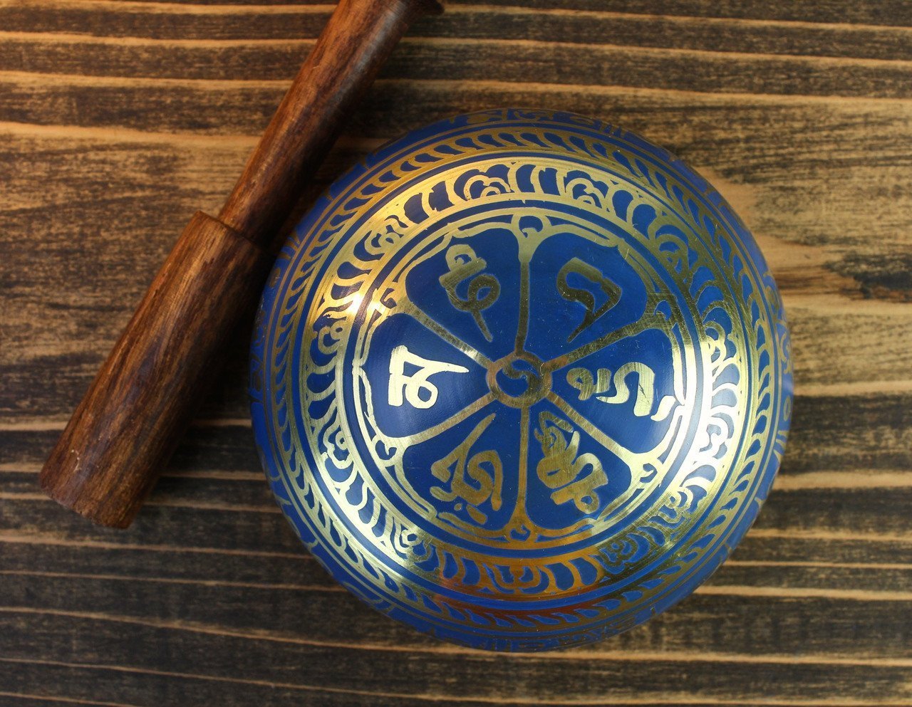Pintado a mano por un artista con oro de 14K. El mantra Om Mani Padme Hum aparece en el exterior, con un doble dorje en el medio.