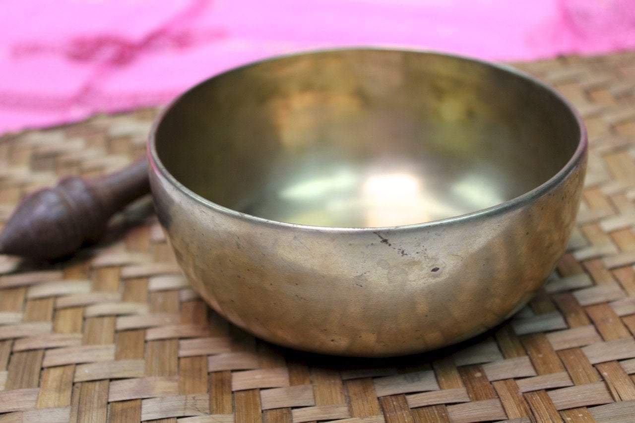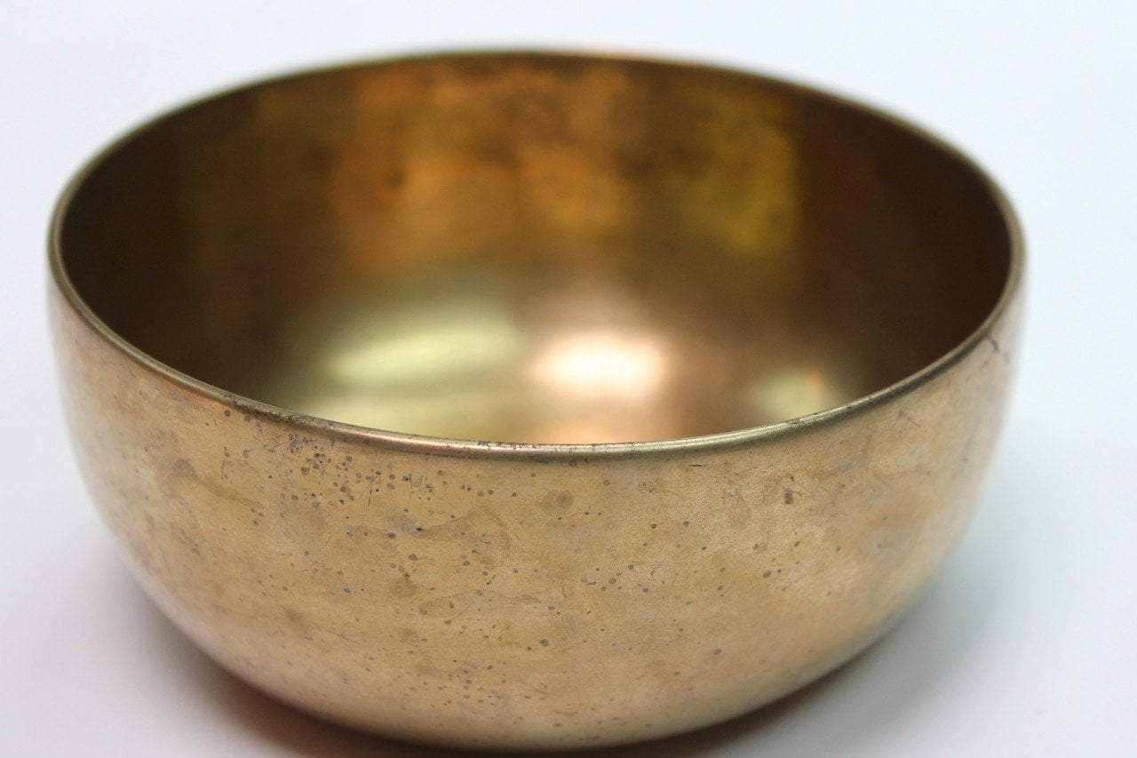 5 pulgadas de ancho por 2 1/4 pulgadas de profundidad, martillado a mano. Canta con un tono G cuando se le golpea.