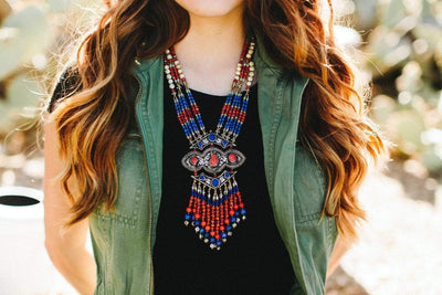 Trabajamos directamente con nuestros artistas en Nepal para crear una gama de collares impresionantes y únicos que habitan el espíritu del Tíbet. Utilizando elementos antiguos y modernos, este collar es una pieza llamativa y colorida que nunca pasará de moda. Usadas con ropa formal o una camisa vaquera informal, las joyas tibetanas parecen casi del sudoeste para nuestra sensibilidad, ya que la estética del diseño es muy similar.