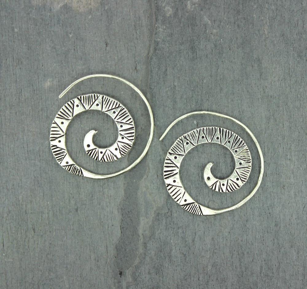 ¡Uno de nuestros artículos más vendidos! Estos intrincados aretes en forma de remolino de plata Hill Tribe tallados a mano tienen un toque moderno en un estilo tradicional. ¡La plata Hill Tribe tiene un contenido de plata pura de 0,98! ¡Gran calidad!