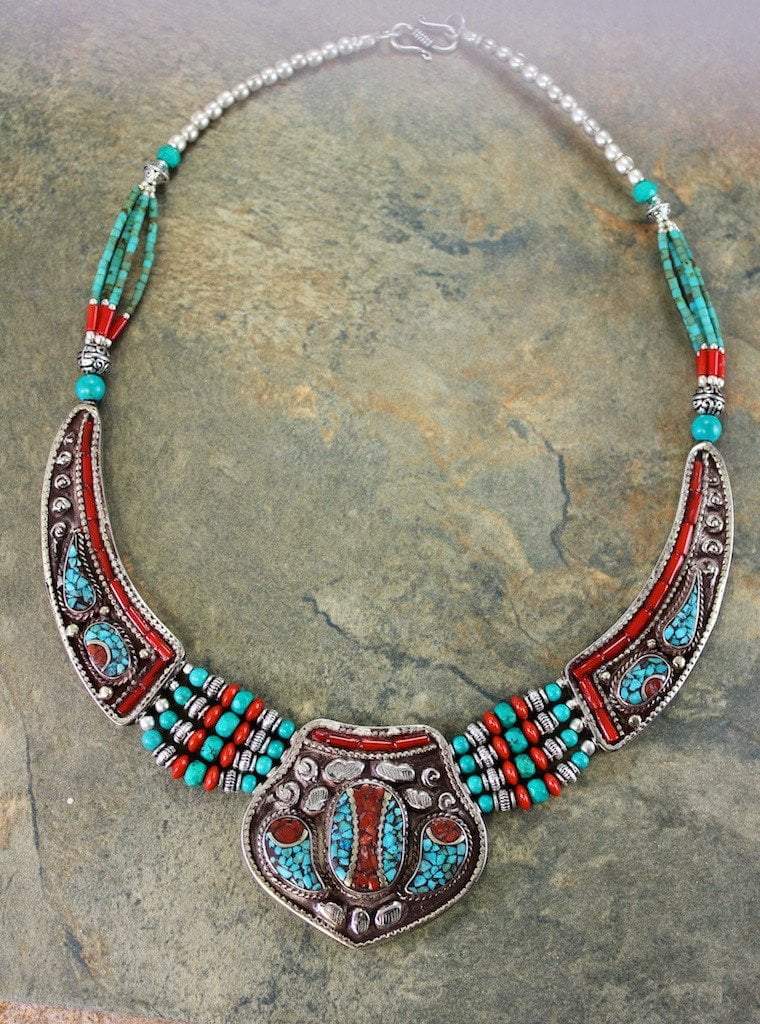 Un extraordinario collar tibetano de coral y turquesas. Sólo dos de estos collares están disponibles.
