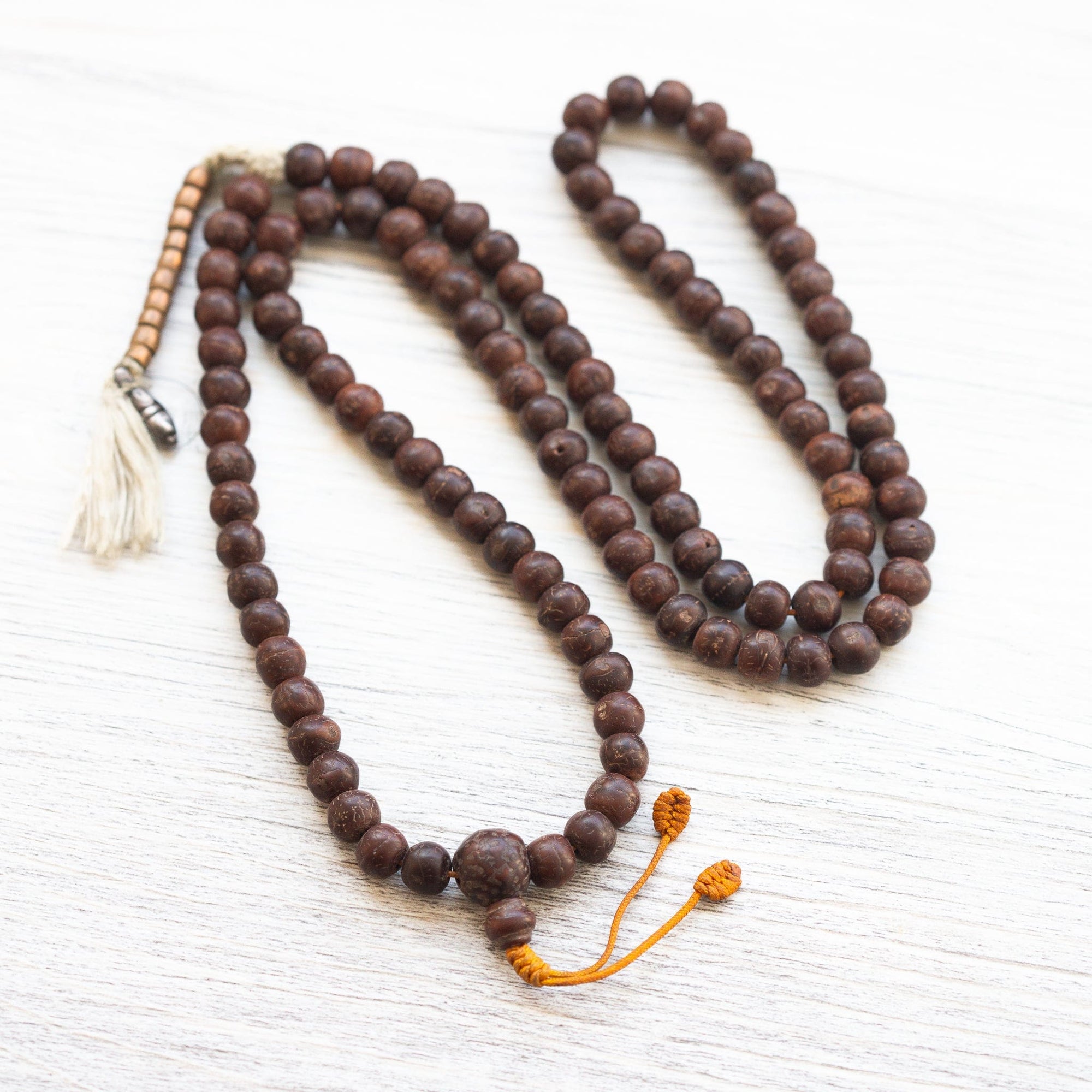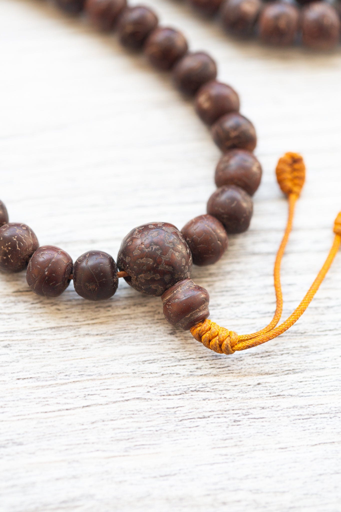 Bodhi Seed beads can be used for counting all types of mantras, prayers, and spiritual reminders. These dark-speckled seed beads have special meaning for all seekers of divine wisdom. It was under the Bodhi tree that Buddha attained enlightenment, which is why "Bodhi" in Sanskrit translates to enlightenment; as in "enlightened" seed. Practitioners use these malas for their essence and inherent teachings within each seed.