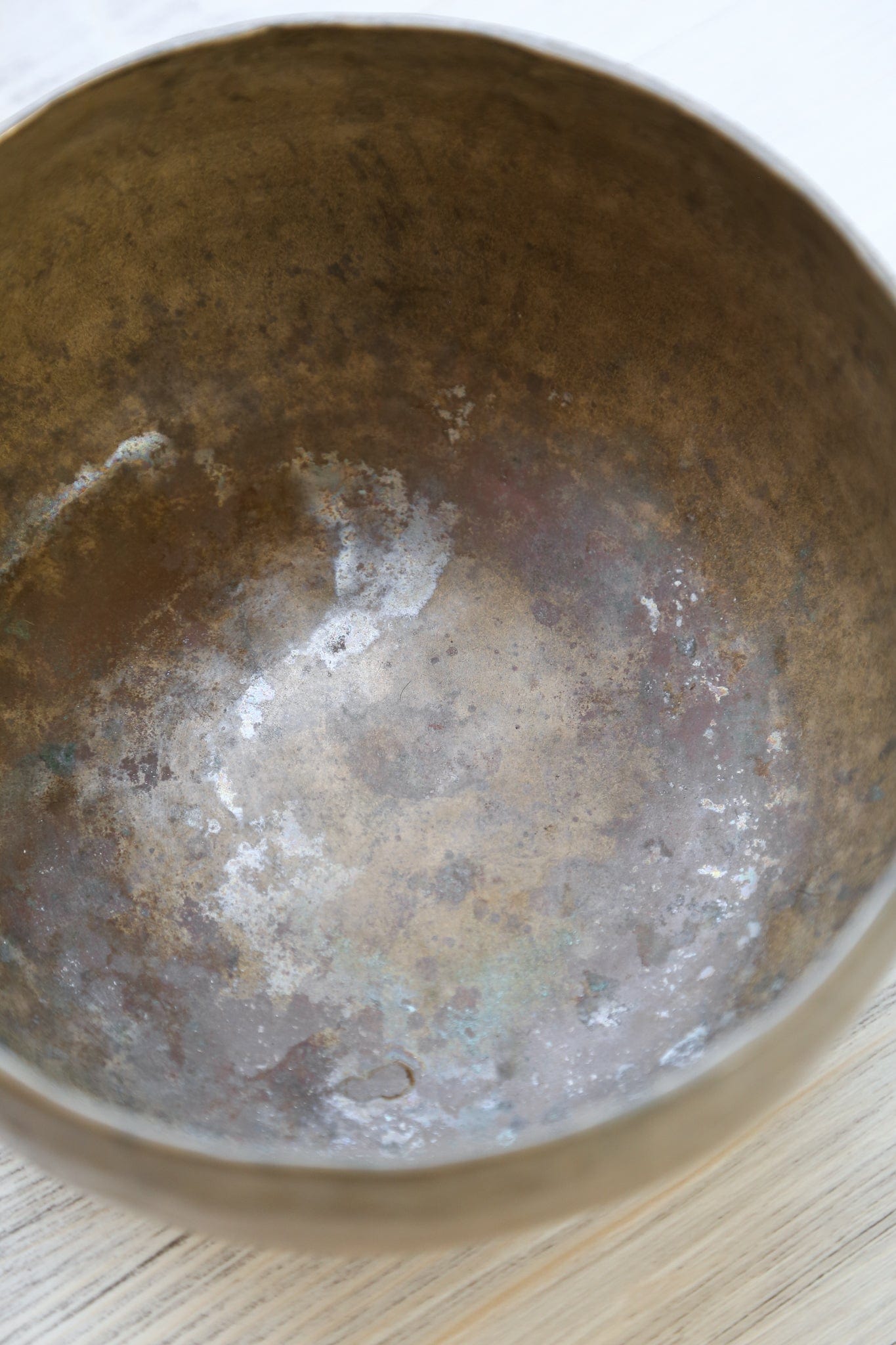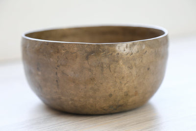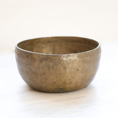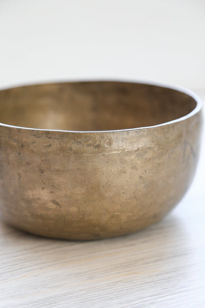 Each time we're able to get a small collection of these bowls is exciting as they are exceptional. Antique Tibetan singing bowls are highly sought after for their remarkable quality of sound, rich tones, and unique physical characteristics. Every handmade mark tells a story of the bowls history! In your hands, we know that these bowls will continue to be a lifetime heirloom, telling their story through their unique markings and golden tones.