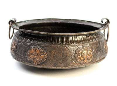 Olla de cobre con símbolos auspiciosos de 10 pulgadas