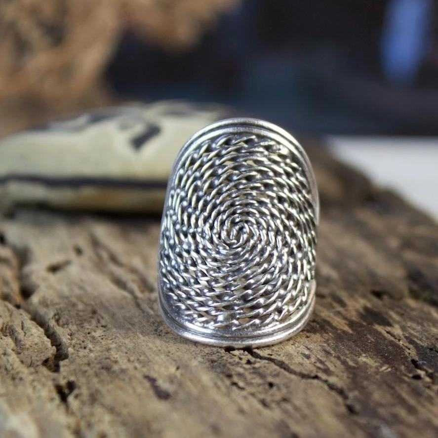 Hermosas y meditativas espirales plateadas. Trabajo en plata increíblemente complejo de Hill Tribe (.98 puro).