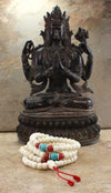 Una nota sobre el uso de huesos: en el Himalaya, es típico que animales grandes como el yak o el búfalo de agua se utilicen para servicios, alimentos, ropa, utensilios y artículos rituales. Dada la cantidad limitada de recursos y las prácticas religiosas de la gente de la región, es importante que ninguno de los animales se desperdicie. Estas increíbles cuentas de hueso están hechas a mano por artesanos que reciclan y reutilizan todo en la vida diaria y la práctica espiritual.