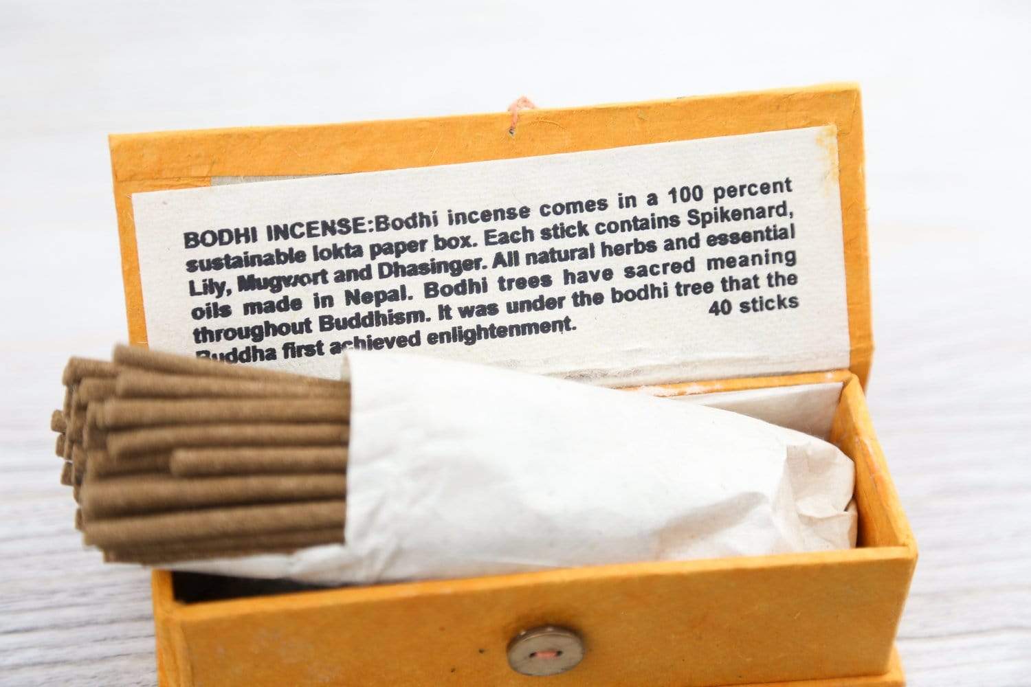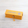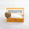 La caja mide aproximadamente 5 pulgadas de largo, 2 pulgadas de alto y 1,5 pulgadas de profundidad. Incluye 40 palos de 4 pulgadas. Hecho a mano exclusivamente para DharmaShop.